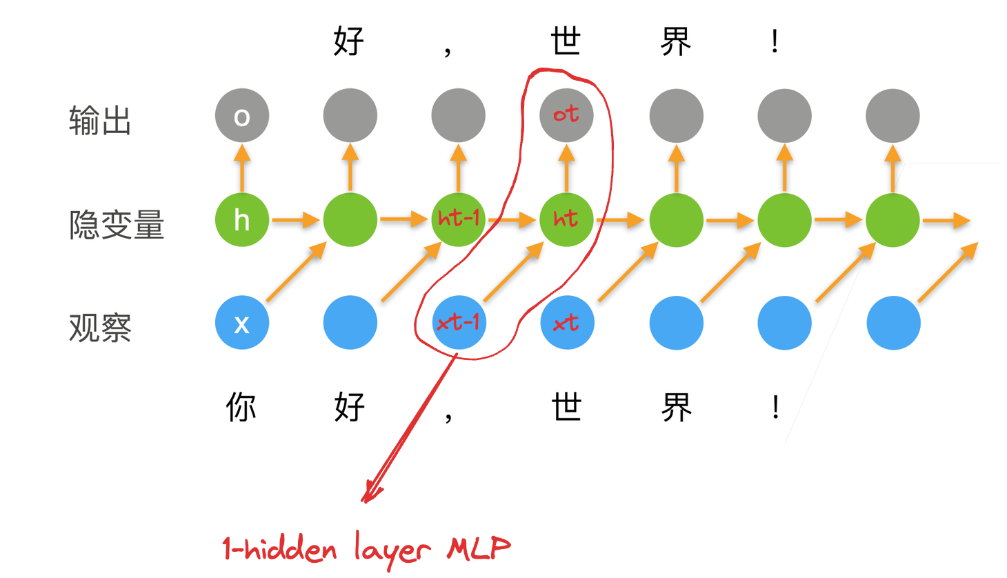 在 8.3 语言模型和数据集中我们研究了 N-gram 语言模型,会随着 N 的增长空间复杂度越来越大,不如我们假设给定一个句子,下一个词出现和两个因素有关: